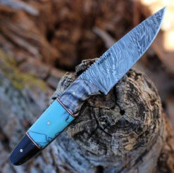 Damascus Blades – Buffalo/Turq Bone (4.5″ Damascus) 1293TR