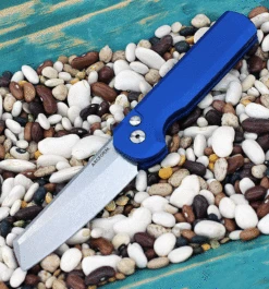 The concept for this knife was to create a USA-made, automatic utility version of the classic Slimfoot. The result is a slightly more compact variation of the original, with a deep carry pocket clip, simple design, and clean lines. The Slimfoot Auto features a 6061-T6 aluminum handle with a blue Type III hardcoat anodized finish. The stonewash 154cm blade, a tried and proven steel, is easy to field maintain and will hold up to extended use. Best in class automatic action from Pro-Tech provides fast and reliable deployment. This knife was built to be carried and used.