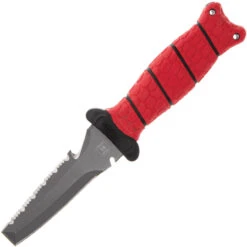 Bubba Blade Blunt Scout Dive Knife, 1107809, 4″ Gray Double Edge Combo Blade, Red TPR Handle, Polymer Sheath