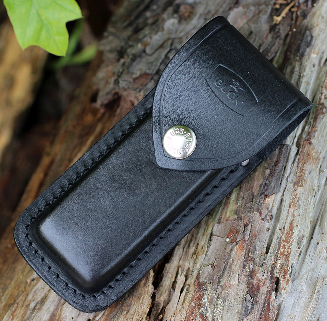 Comes with a genuine, black leather sheath that is designed to prevent deployment when removing knife.