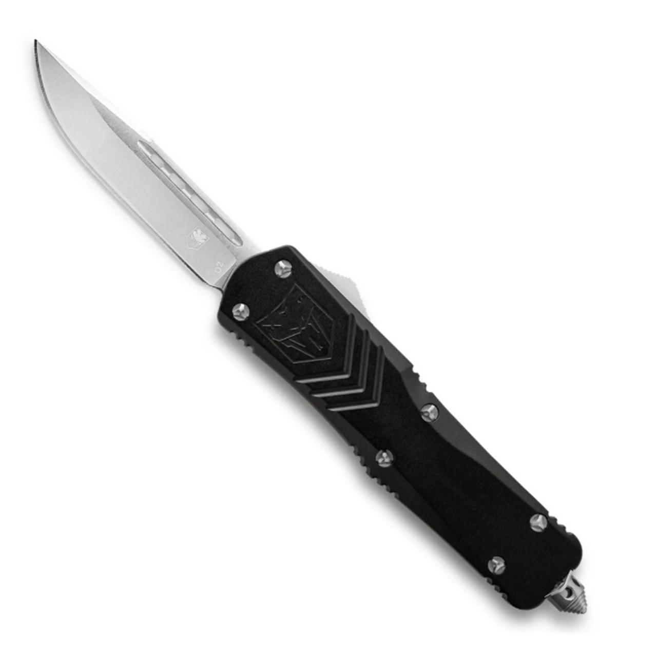 CobraTec Medium FS-X OTF (Out the Front) Automatic Knife (MBLKFS-XMDNS) – 3″ D2 Non Serrated Satin Drop Point Blade, Black Anodized Aviation Aluminum Handle